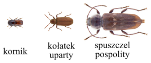 Mylnie uważa się, że to Korniki (Ips Spp.) są odpowiedzialne za uszkodzenia drewna – w rzeczywistości to Kołatek domowy (Anobium punctatum), Kołatek Uparty (Hadrobregmus pertinax) i Spuszczel pospolity (Hylotrupes bajulus) stanowią główne zagrożenie. Kołatek to niewielki chrząszcz ( 3-6 mm długości), którego larwy żerują w drewnie zarówno iglastym, jak i liściastym. Spuszczel pospolity, większy (15- 25 mm długości), atakuje drewno iglaste – np. świerk, jodłę, sosnę czy modrzew.