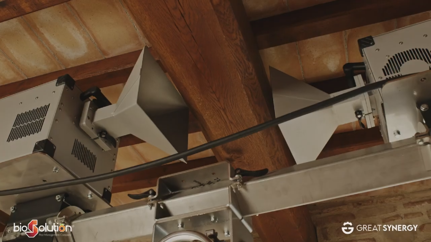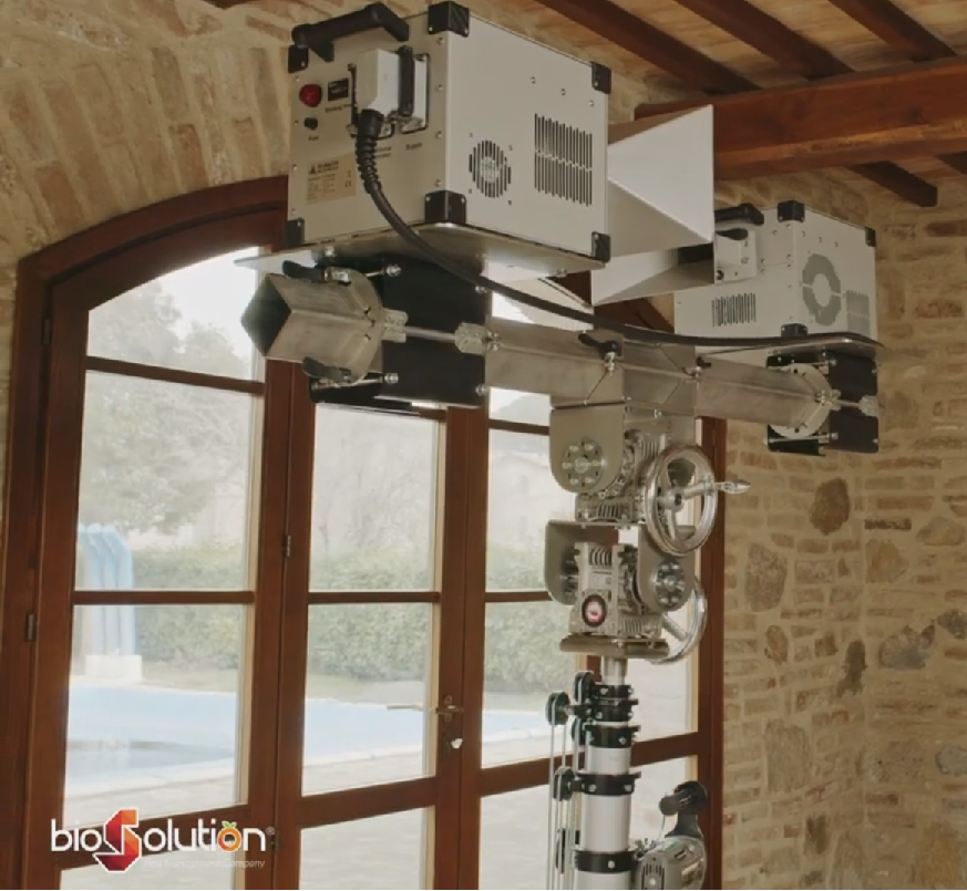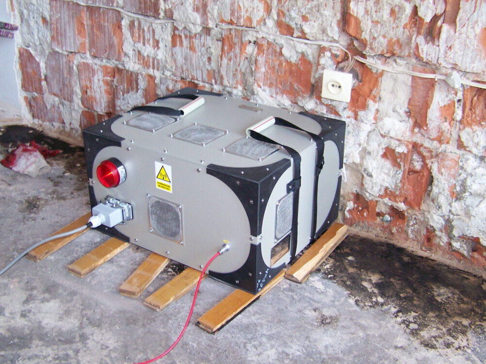 Przemysłowy generator mikrofal do osuszania ścian i fundamentów w budynkach oraz zwalczania szkodników drewna w elementach konstrukcyjnych i więźbie dachowej.